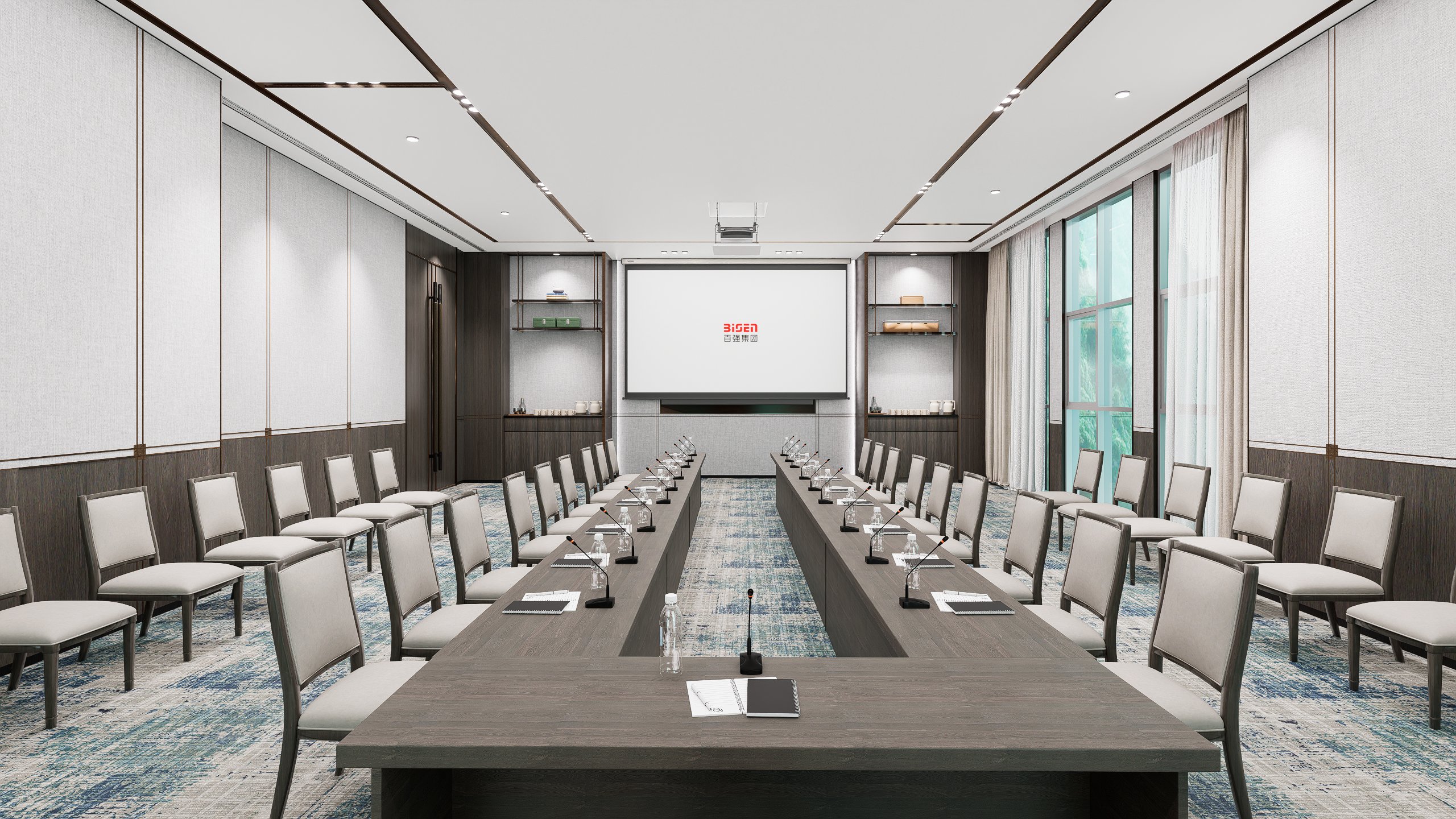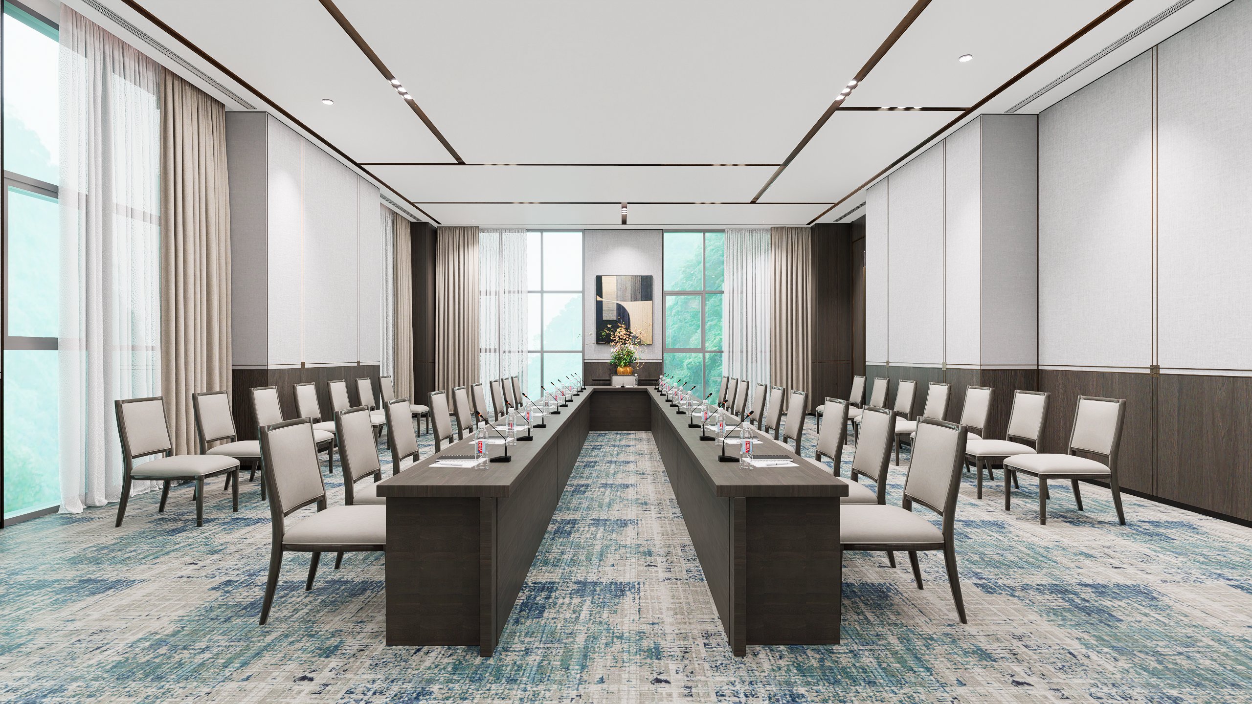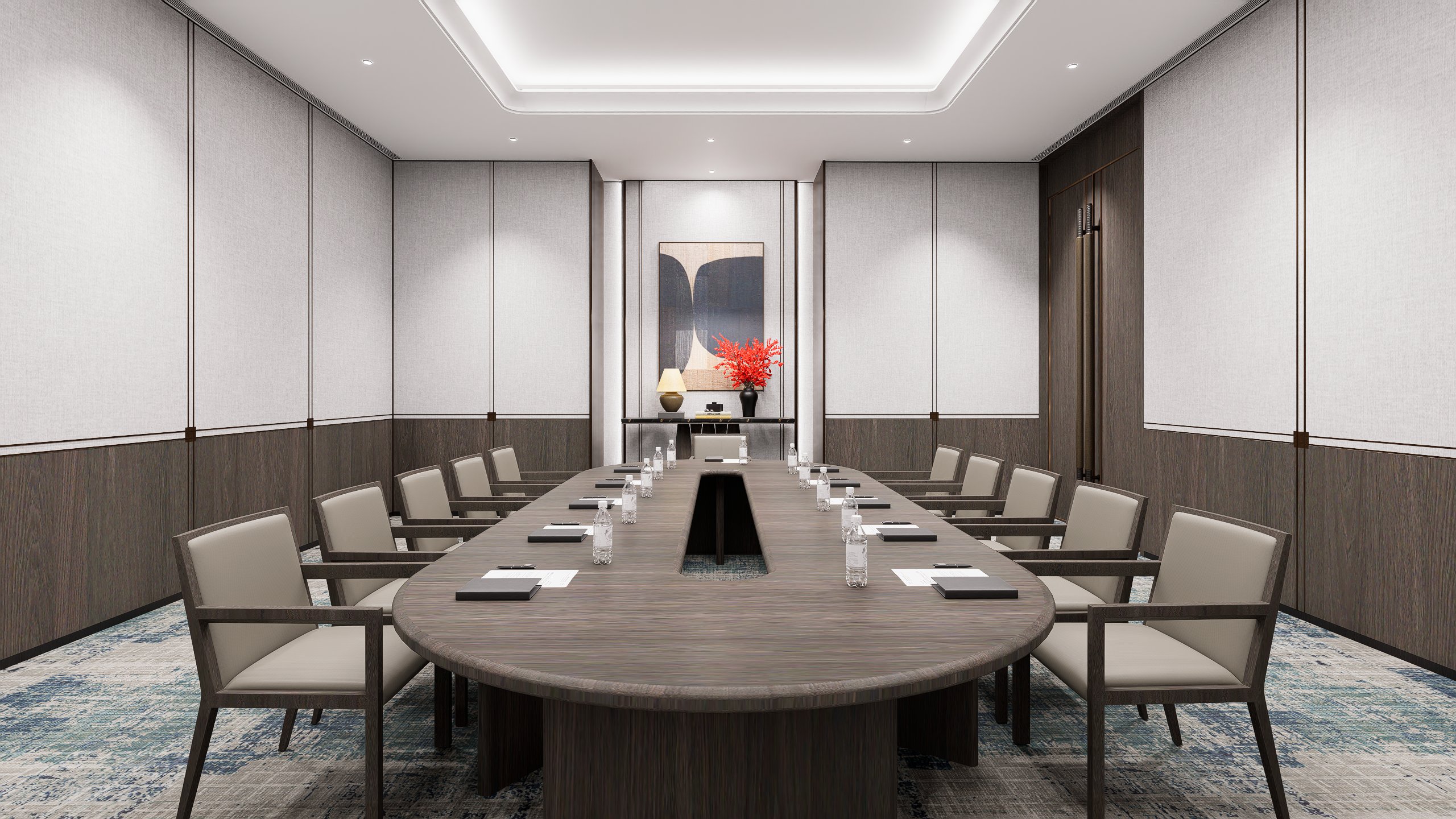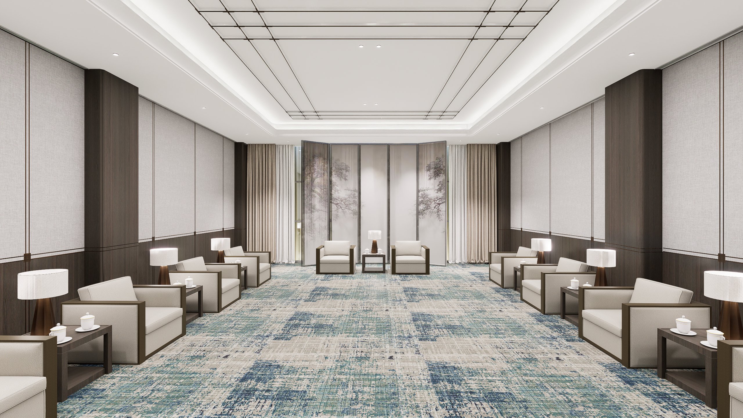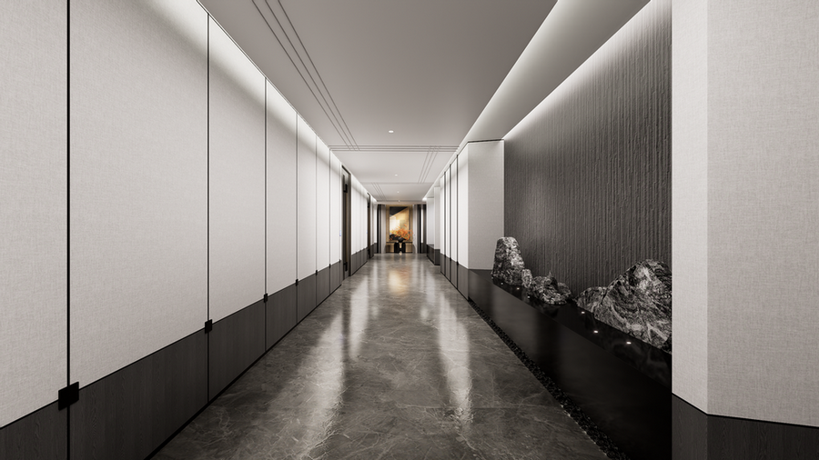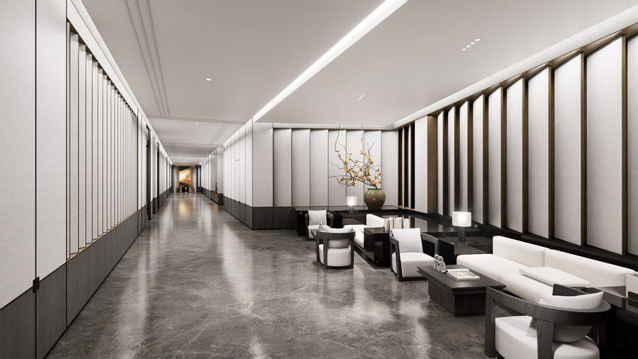 十堰百强国际大酒店公区改造项目,秉承“雅韵传承”的设计理念,融合十堰当地的非遗文化与现代简洁设计,打造出富有文化底蕴与尊贵感的空间。通过对走廊、中型会议室、大会议室和贵宾接待室的改造,在满足高效功能需求的同时,提升了空间的艺术感与舒适度。每一处细节都展现了传统与现代的完美融合,呈现出典雅、高贵的氛围,致力于为宾客提供尊贵、独特的体验。